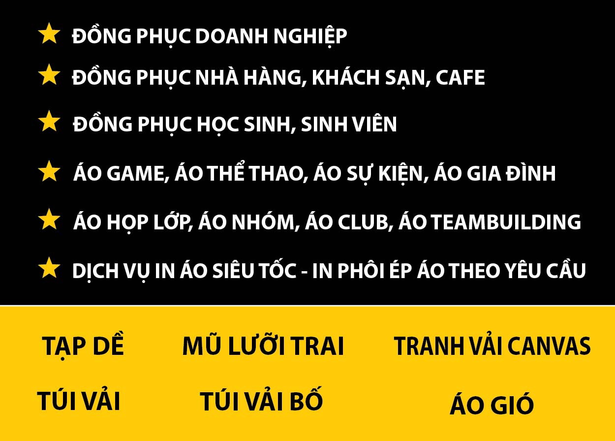 • Chúng tôi là một xưởng sản xuất Đồng Phục và In Ấn trên Vải với niềm đam mê và lòng tận tâm.